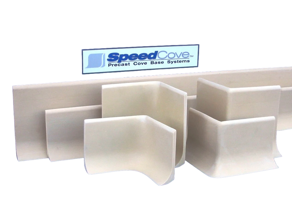 The inside and outside corners and covebase are all available in 4″, 6″, and 8″ height. Install SpeedCove with Touchstone T-2000 Epoxy Adhesive.