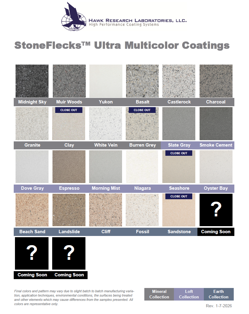 StoneFlecks Ultra Multi-Color Finishes help you to achieve the look of natural stone and lasting durability, at a fraction of the price. Choose from three color collections to match a variety of design styles: